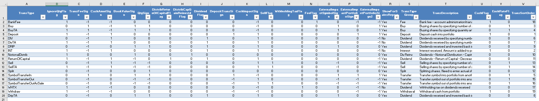 Although you will never need to edit this table, it is helpful to understand supported TransType values that are used in transactions table TransType column.
