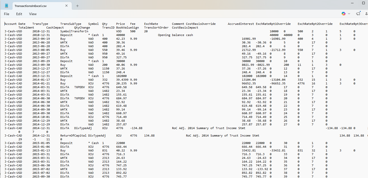 TransactionsInExcel.csv Overview TransactionsInExcel.csv contains all transactions extracted from the Portfolio Slicer source file.